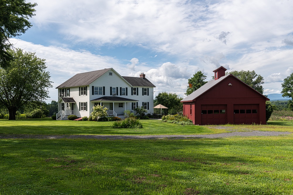 Picture postcard setting for this tastefully restored and updated farmhouse located off a lightly traveled country road with Catskill mountain and protected farmland views. Elegance, light and charm embody this home. 3 fireplaces, formal and informal rooms, wide board floors, en suite master with fireplace and balcony. Beautiful country kitchen, 2 rocking chair porches and an al fresco stone terrace to enjoy the peace and quiet. A stones throw from the Hudson river, 10 min or less to Hudson, Kinderhook Village & Pico de Gallo restaurant.