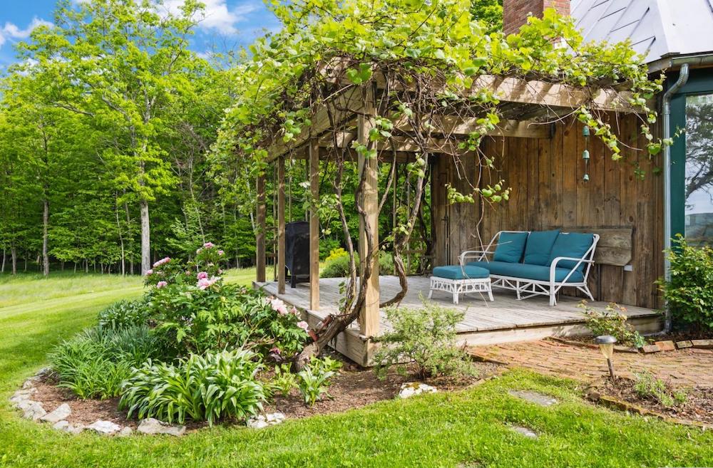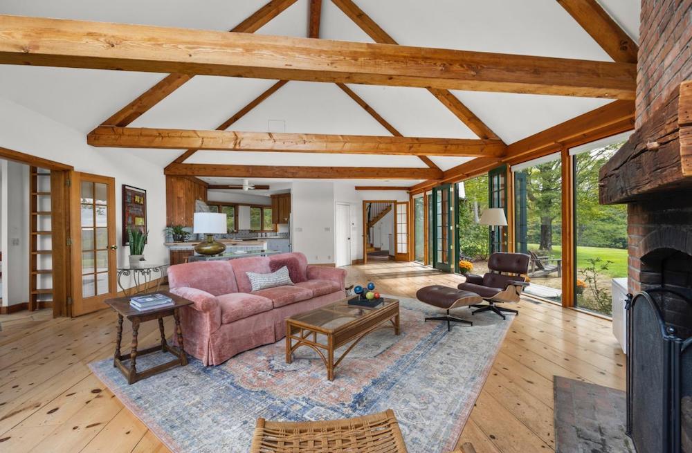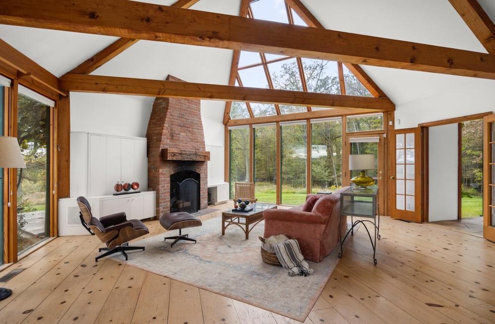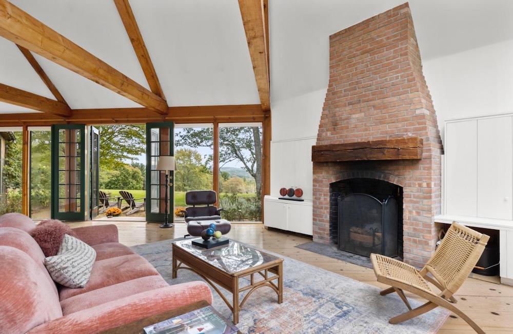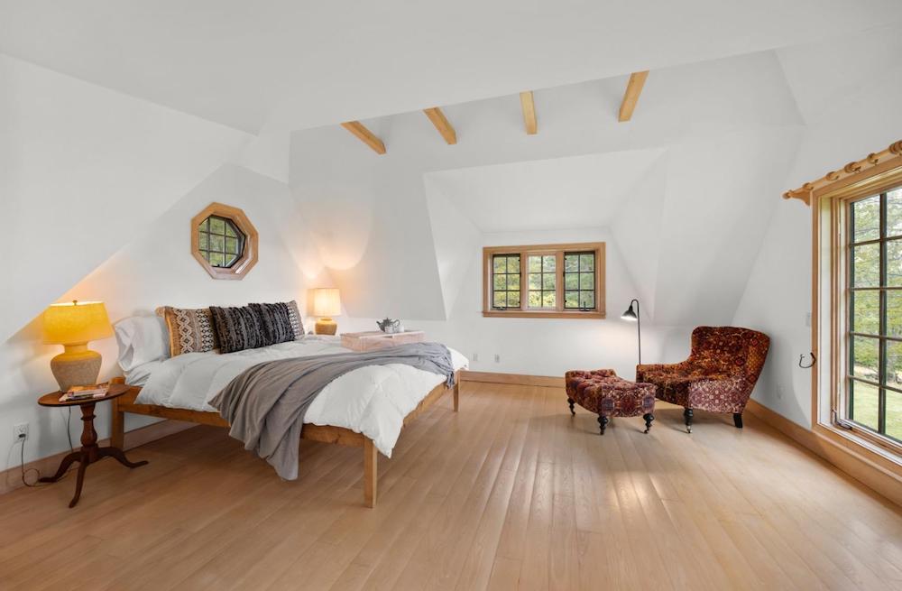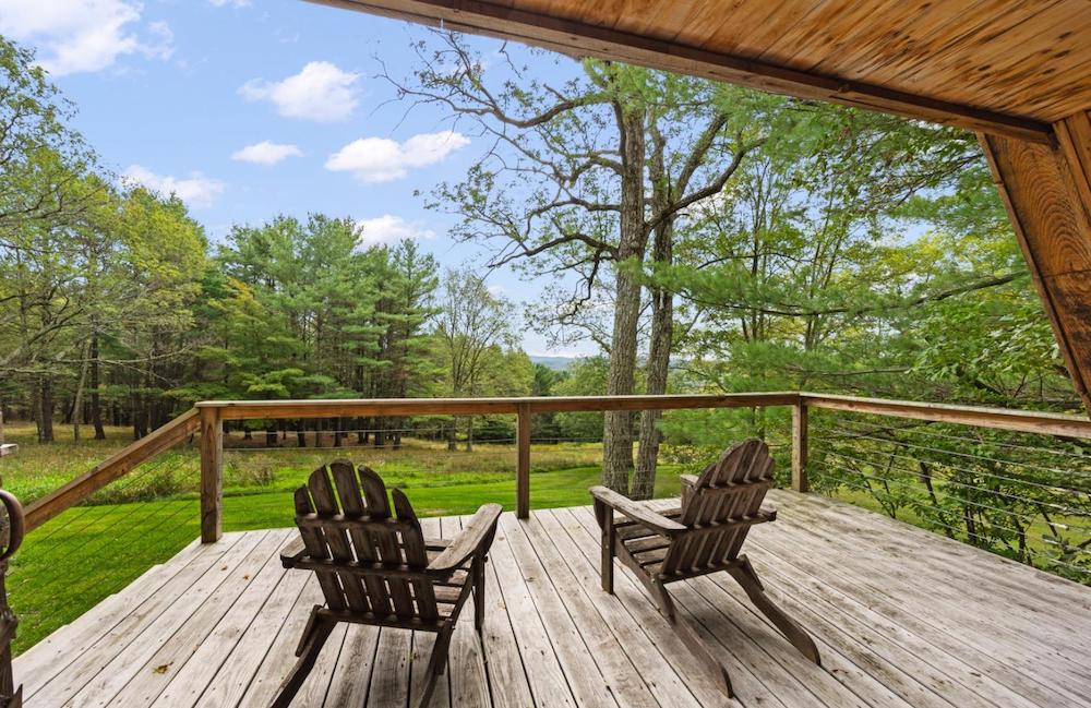 Hilltop Shangri-La overlooking a breathtaking view of the Catskills, rolling hills and valley below. This property evolved from a love of nature and with a strong European influence. You can almost hear Julie Andrews singing The Hills are Alive. The main house has a great room encompassing the kitchen, dining area and living room with fireplace. There are two first level bedrooms and one has built- ins so could easily function as a library or office. The second floor has an ensuite bedroom and bath with dressing/ closet area. There is a 2 plus bay garage/barn with garden room, hobby space and entertainment room. The A-frame has functioned as a guest house and office. The location is so close to many destinations, 25 min to Hudson, 20 min to Great Barrington, 15 to Hawthorne Valley and less than 10 to Chatham Village.