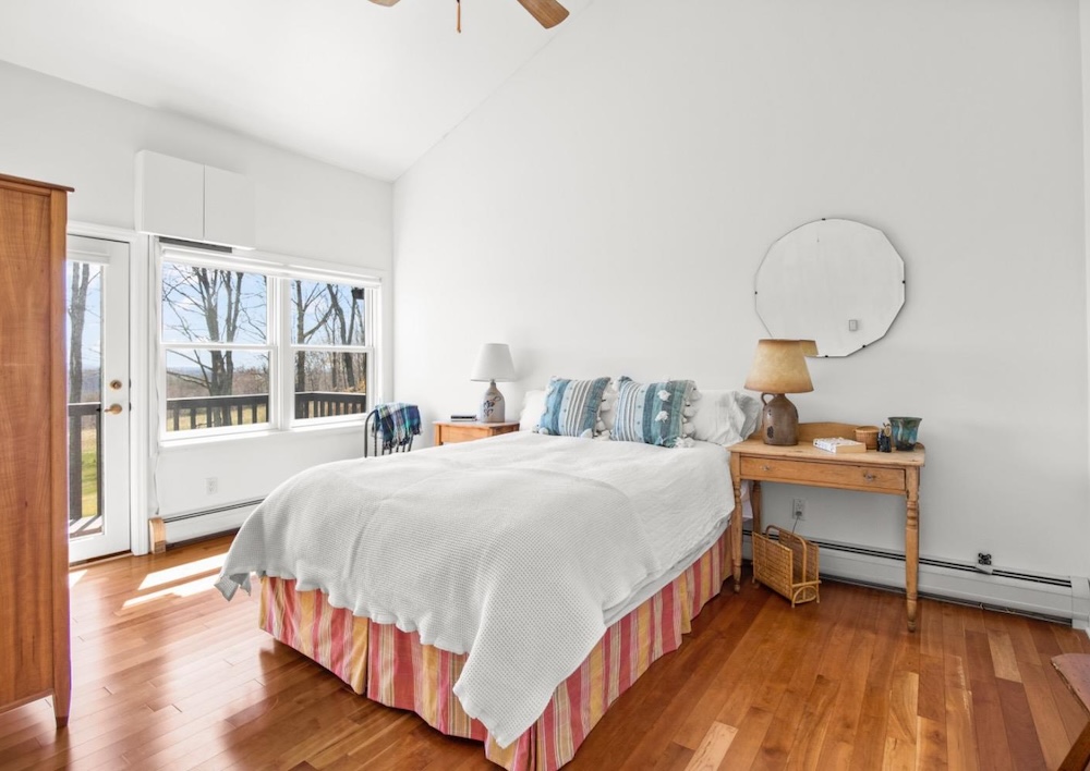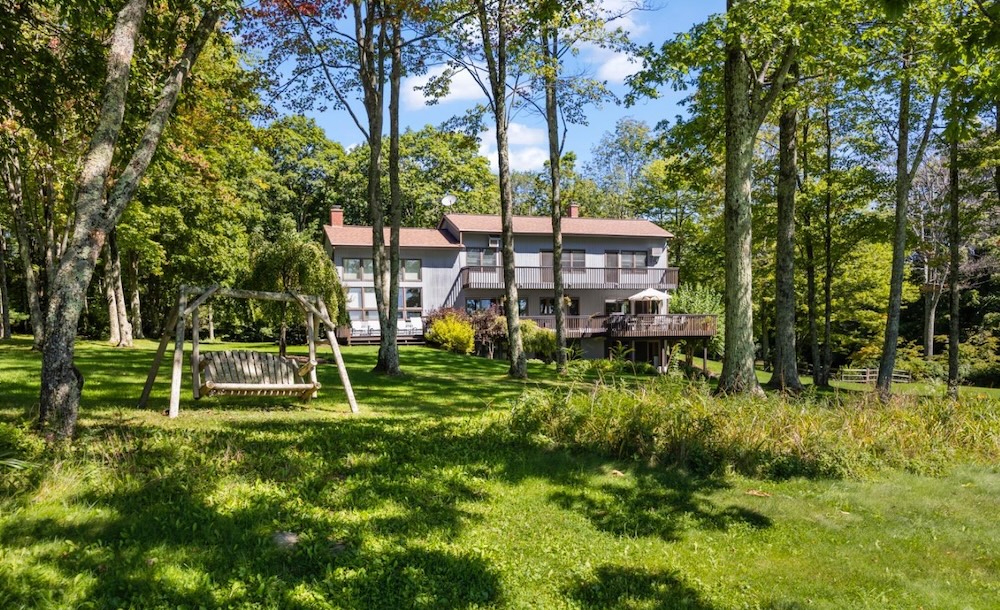 A property to enjoy all seasons and just perfect for entertaining!  The main level offers a open kitchen/ dining concept and is flanked on one side by a living room with fireplace and vaulted ceilings, and the other side by a family room with built-ins and a woodstove. There is easy access to a large entertainment deck for those summer meals, cocktail parties or just relaxing and enjoying the view.  The second level offers an en suite master, 2 guest bedrooms and additional bath. The lower level is ideal when the whole gang is visiting; there is a gathering room, 2 more bedrooms, bath and laundry.  The almost 19 acre setting offers privacy, beautiful gardens, specimen trees, lush lawns and lovely meadow. The heated inground pool offers summer fun, and the lawn is ideal for bocee and volleyball. Hiking and cycling are right out your front door.  There are several ski mountains close by, as well as famers market, theatres, shopping, breweries and fine restaurants.
