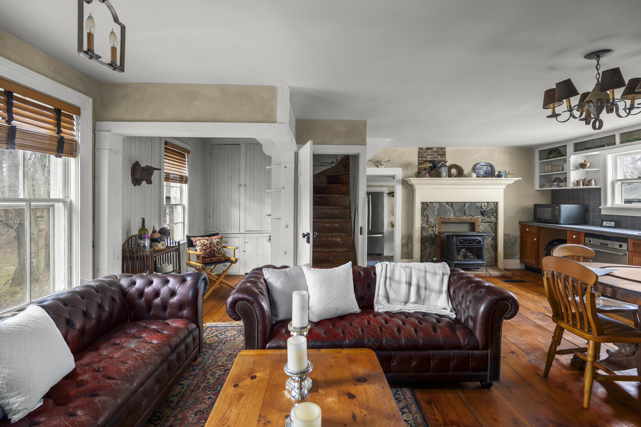 | Charming antique homestead nestled into the rolling hills of the Ghent countryside. The circa 1825 eyebrow colonial offers 4 bedrooms, a large country kitchen open to a sitting area, wideboard floors throughout,, formal and informal gathering areas, period moldings and hardware. The sunlight dances through the windows highlighting a rich patina. Over 11 diverse acres of sunkissed meadows, lovely gardens, and majestic age old trees. Lots of room for chickens or kids ( both the two legged and four legged :). You’ll love the privacy, the oversized two car garage with shop and the early post and beam barn. Its a pretty sweet location less than 15 minutes to Hidson or Chatham village. |
