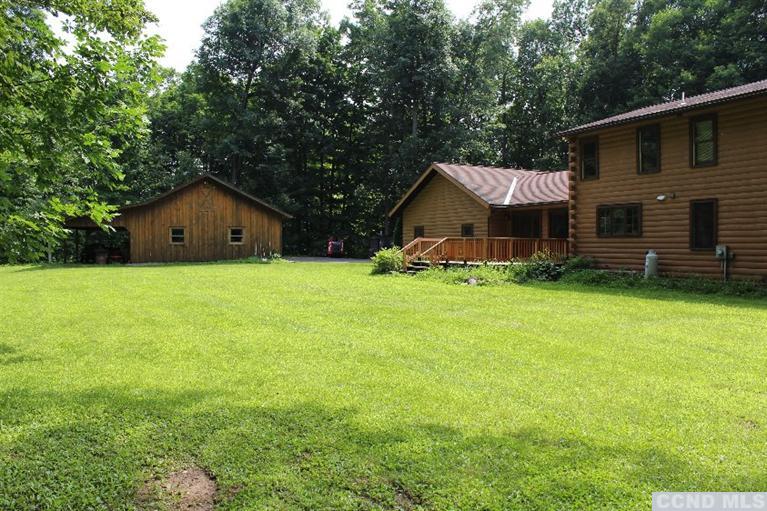 Long winding drive to complete privacy. Custom built log cape with stone fireplace, milled woodwork, finished basement with exercise area and 3/4 bath. Rocking chair front porch and an awesome, multipurpose, heated three-bay barn! 21 acres of woods and paths to explore.
