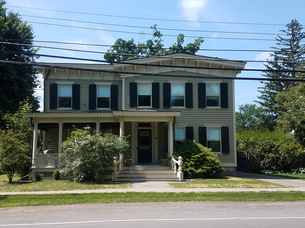 Elegant and spacious Greek Revival 19th Century home in the heart of Kinderhook Village Historic District, just a few steps from the village center. Well maintained with high ceilings and all original details intact. Gracious curved staircase and additional back stairs. Updated baths and kitchen with top fixtures and appliances. Property includes handsome two story carriage barn, large blue stone patio and professionally landscaped grounds. The fenced backyard abuts the Columbia County Historical Society fields. Walk to restaurants, shops, bank, post office, library and Farmers’ Market. Watch the parades from the comfort of your spacious front porch.
