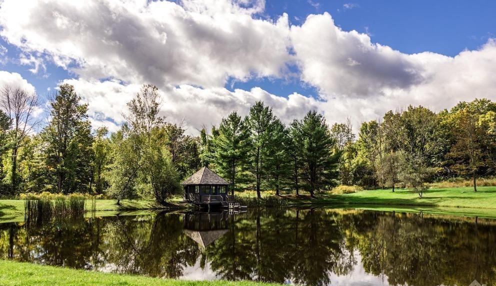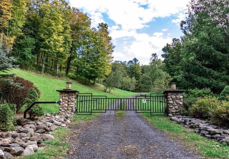 412 + acre rare & enchanting paradise. A long gated driveway framed by mature maples & ancient stonewalls lead you over a bridge gently ascending through the woods and breaking open to rolling fields and stunningCatskill Mountain views. A perfect quiet spot to watch the fiery evening sunsets while reflecting on the day’s end. Follow the path a bit further – winding through the birch grove & pine forest to your peaceful on golden pond. Relax inside the pond house warming by the woodstove or sit on the dock listening to the crickets while fishing in the stocked pond. Take a walk on the trails through the hardwood forest or go for an adventure on the ATV.