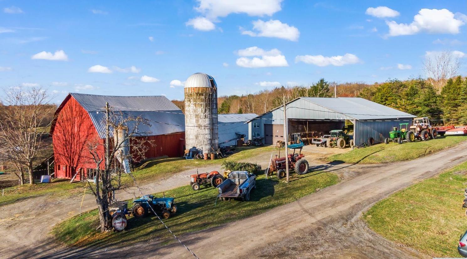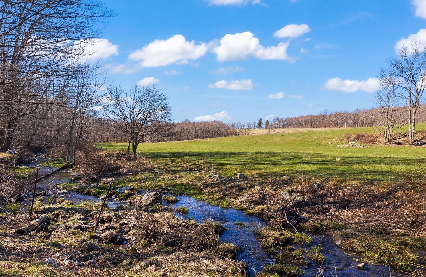81 acre cow farm with a picturesque setting nestled in the hills of Spencertown NY. Beautiful open rolling farmland with a year round stream meandering through the valley and 3 small ponds. Spectacular Catskill Mountain views from the hilltop- a perfect place to build your dream house or to continue cutting hay. An Early rambling farm house with room for all waiting to be restored. A huge 1900’s dairy barn with hayloft, metal storage barn with workshop, garden shed, tractor barn and 2 house trailers also included in the sale. Continue with the farming tradition or transform into a weekend retreat.