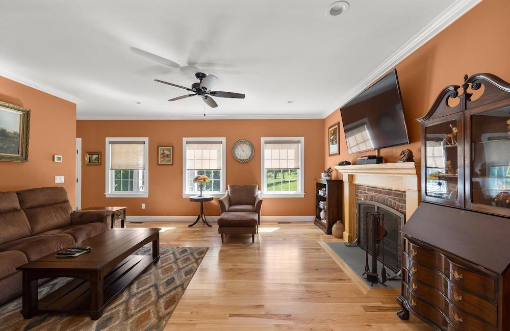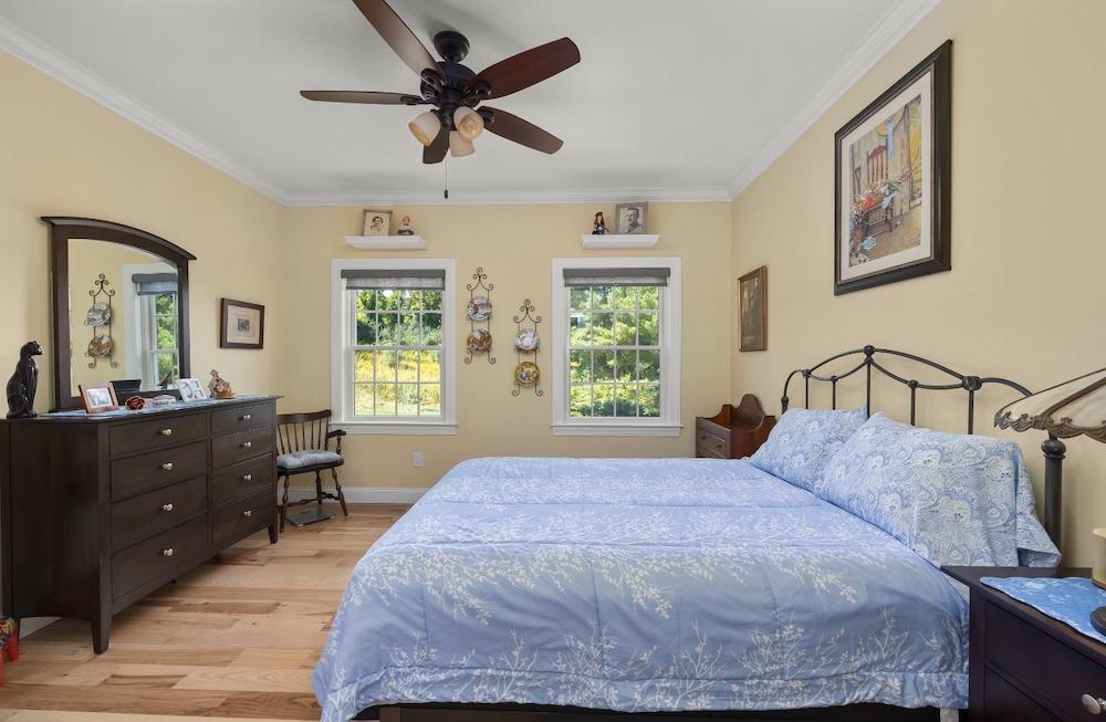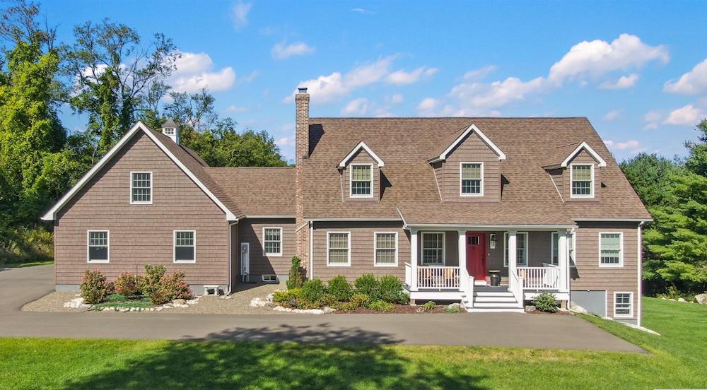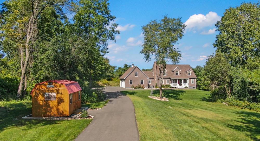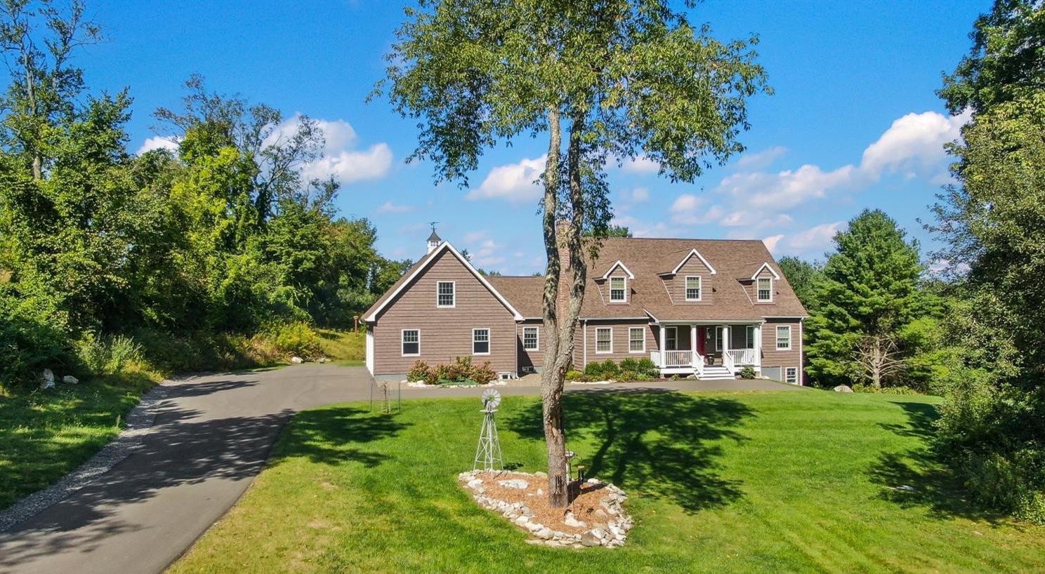 Wonderful immaculate country cape on 14 private quiet acres. This property offers it all!! Light & bright spacious rooms with tall ceilings, beautiful hickory floors, fireplace in living room, open kitchen – dining room, sunroom, 2 bedrooms on first floor with 1 & half baths and laundry room. The second floor has a large office /guest room, full bath and another spacious bedroom. Attached oversized 3 car garage, huge walkout basement, trex decks, full house generator and central air.