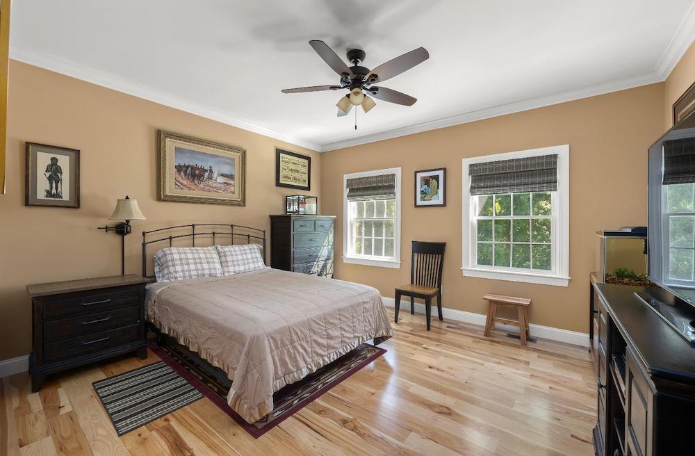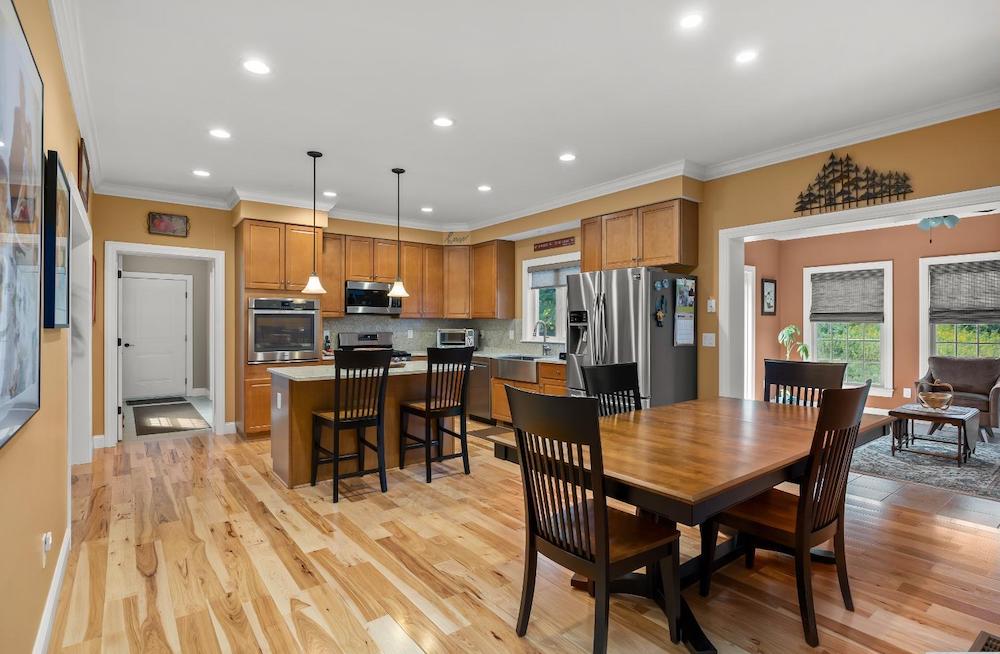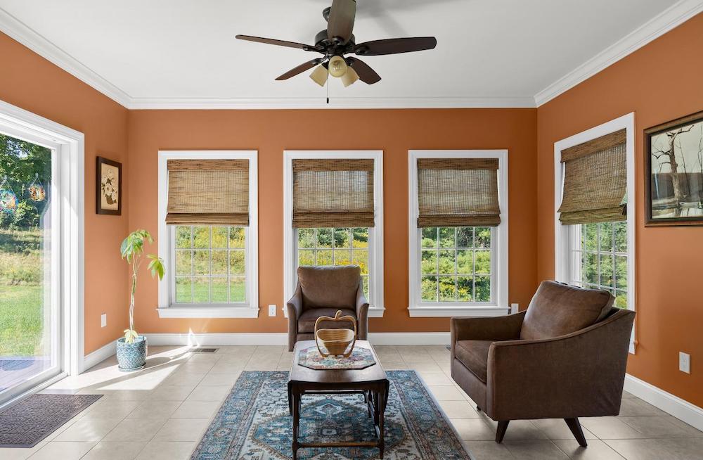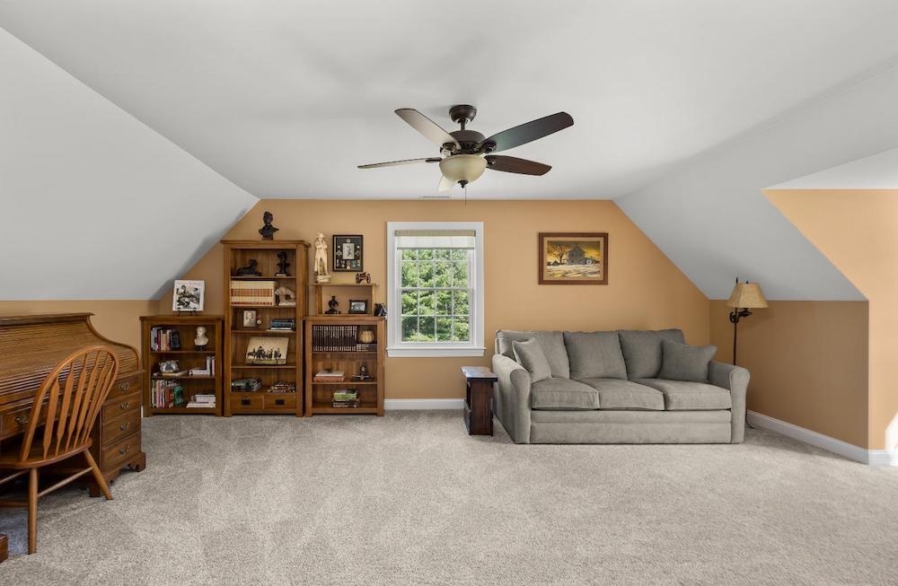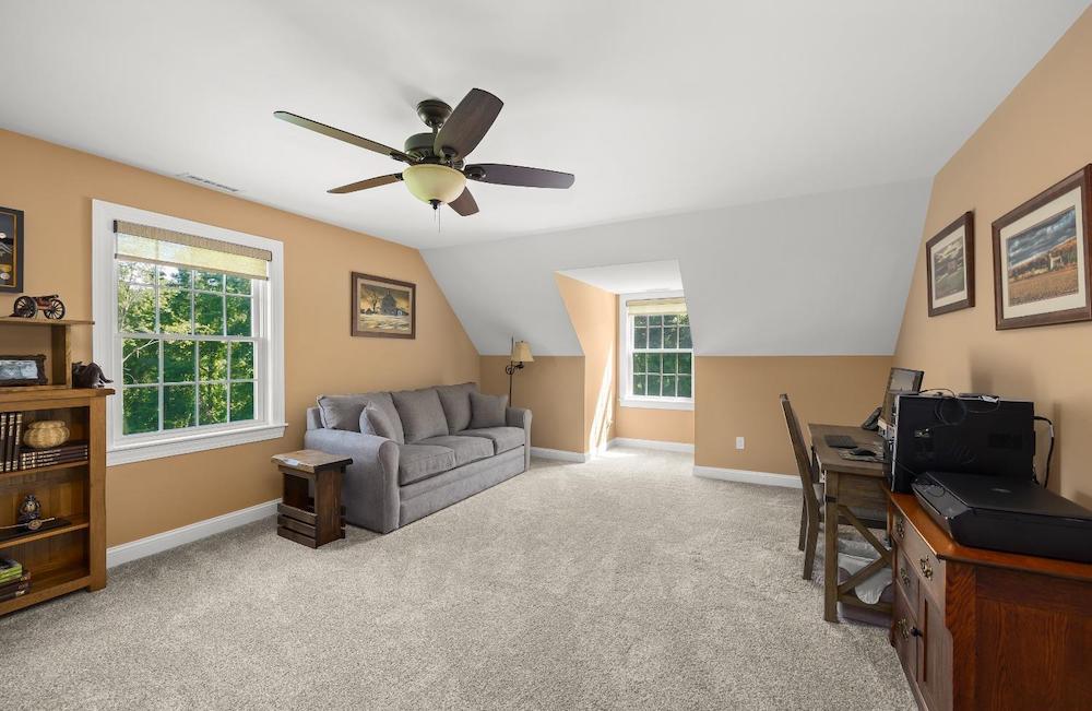 Wonderful immaculate country cape on 14 private quiet acres. This property offers it all!! Light & bright spacious rooms with tall ceilings, beautiful hickory floors, fireplace in living room, open kitchen – dining room, sunroom, 2 bedrooms on first floor with 1 & half baths and laundry room. The second floor has a large office /guest room, full bath and another spacious bedroom. Attached oversized 3 car garage, huge walkout basement, trex decks, full house generator and central air.