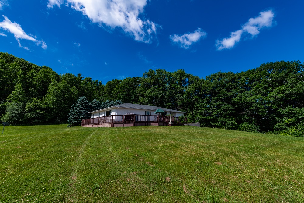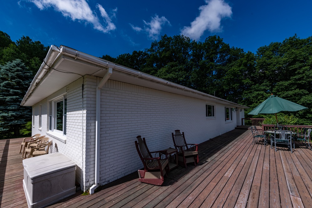 Reminiscent of Mid Century, this updated stylish white brick Ranch home features sweeping mountain views, 4 bedroom (all with ensuite baths), generously proportioned rooms with lots of closets and a relaxing wrap around deck. The semi-open floor plan and the large gathering room’s centerpiece wood burning fireplace make this one level home a great place to enjoy country life. Stunning mountain views from the updated kitchen and dining room add to the enjoyment of being at home. There is room for a pool, tennis court or horses. This home has been well maintained and ready for full time or weekend living. Located just outside the historic and picturesque hamlet of New Concord (Queechy Lake rights) makes this home accessible and close to Chatham, Hudson, The Berkshires and an easy Albany commute.