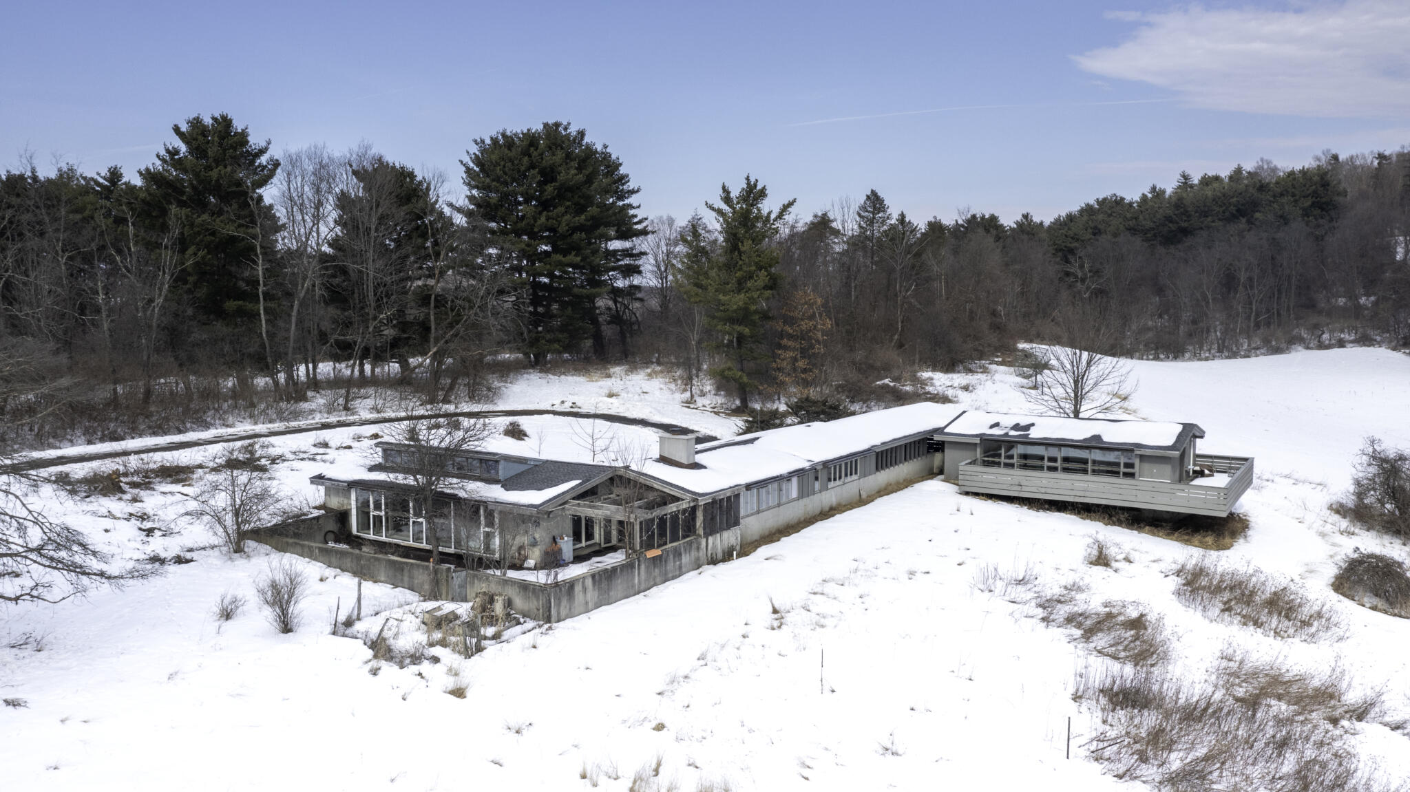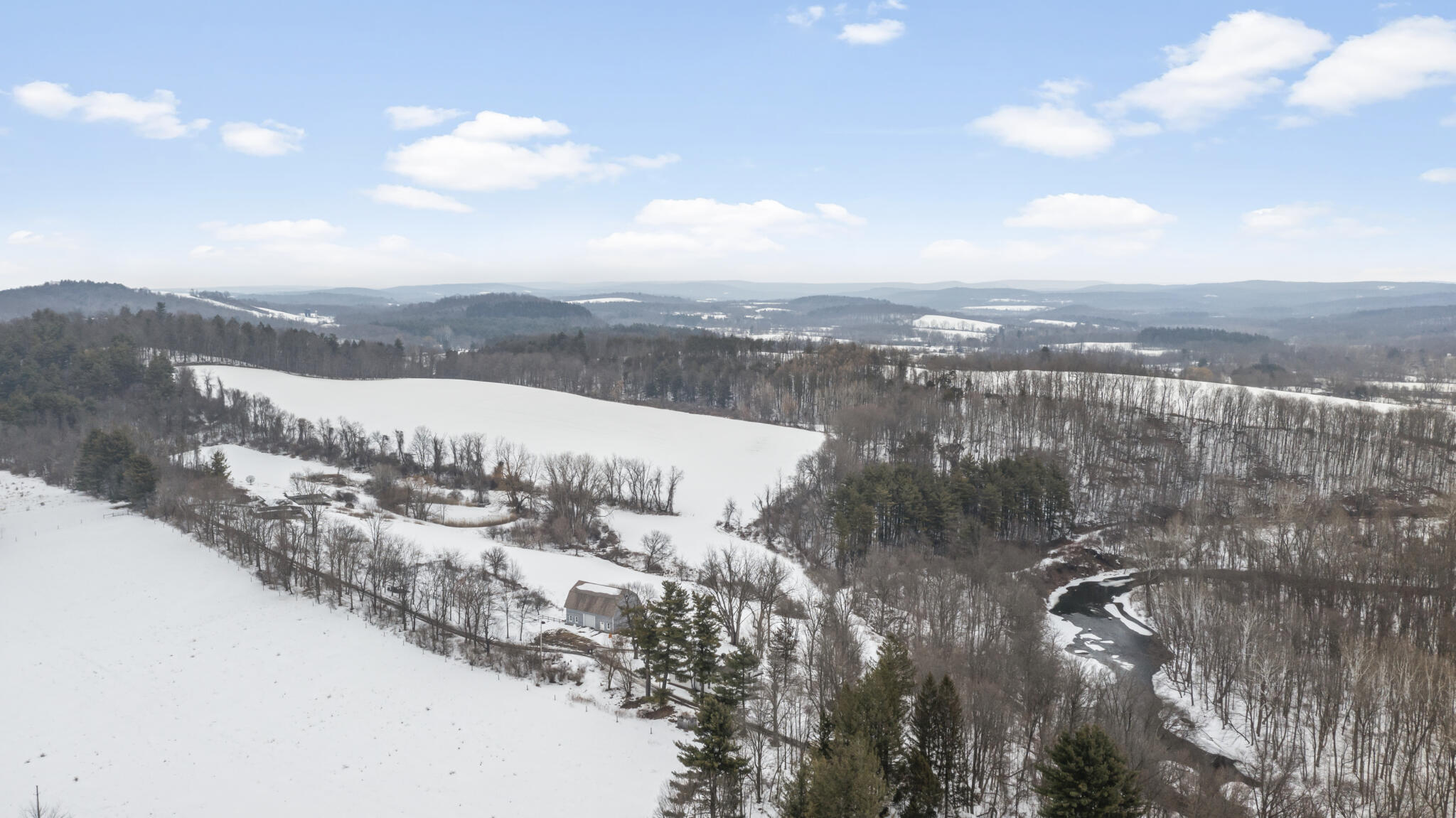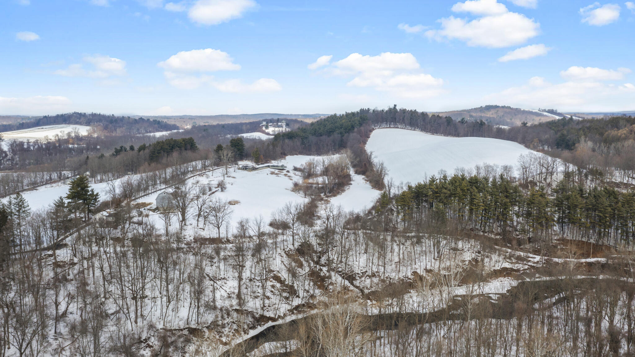 | Tucked away at the end of a quiet dead-end road in the glorious countryside of Chatham, this exceptional property offers privacy, history, and sweeping natural beauty. The circa 1840’s five-bedroom farmhouse combines timeless character with comfortable living, featuring a first floor primary en suite, an inviting library, and a warm living room with a fireplace. The charming hobby room and windows throughout the home frame picturesque views in every direction. A beautifully retored 51 x 28 period barn has been compltely rebuilt and offers remarkable versatility, with additional storage or parking below- perfect for studio space, classic cars, equipment or creative pursuits. An architecturally designed 3000 square foot studio and guest house has two passive solar art studios and provides an inspiring retreat of its own, complete with a primary bedroom en suite, adaptable work areas, a full kitchen with fireplace, plus kitchenette and utility rooms. The expansive picture windows and private patio overlooks the pond and captures dramatic long-range views of the surrounding landscape. A 4 bay carport offers ample under cover parking. Set on more than 65 acres of open fields and woodland, the property includes additional building sites and frontage along the beautiful Kinderhook Creek.This remarkable setting offers endless possibilities, whether envisioned as an artist’s retreat, family compound, or peaceful country haven. |