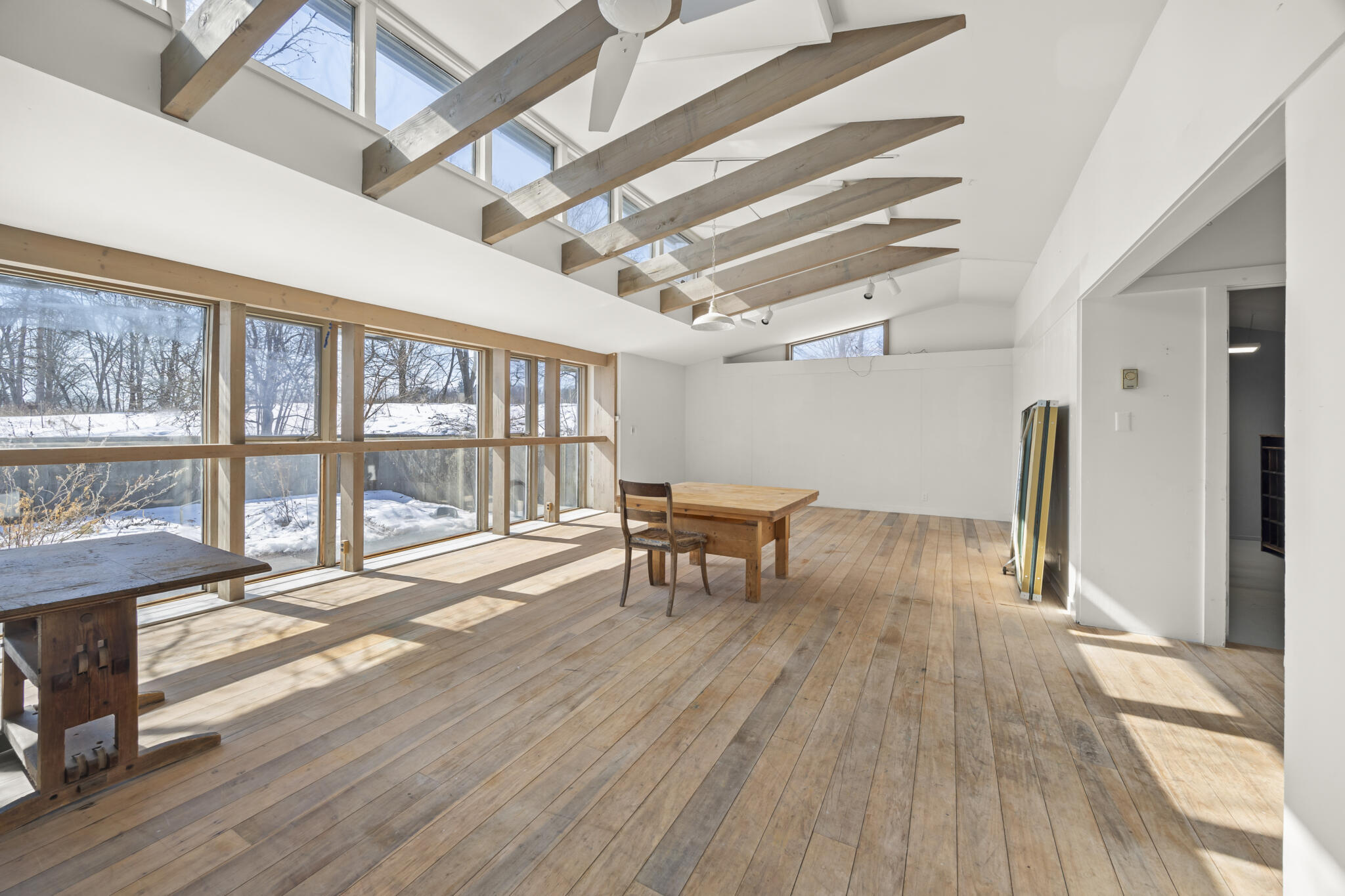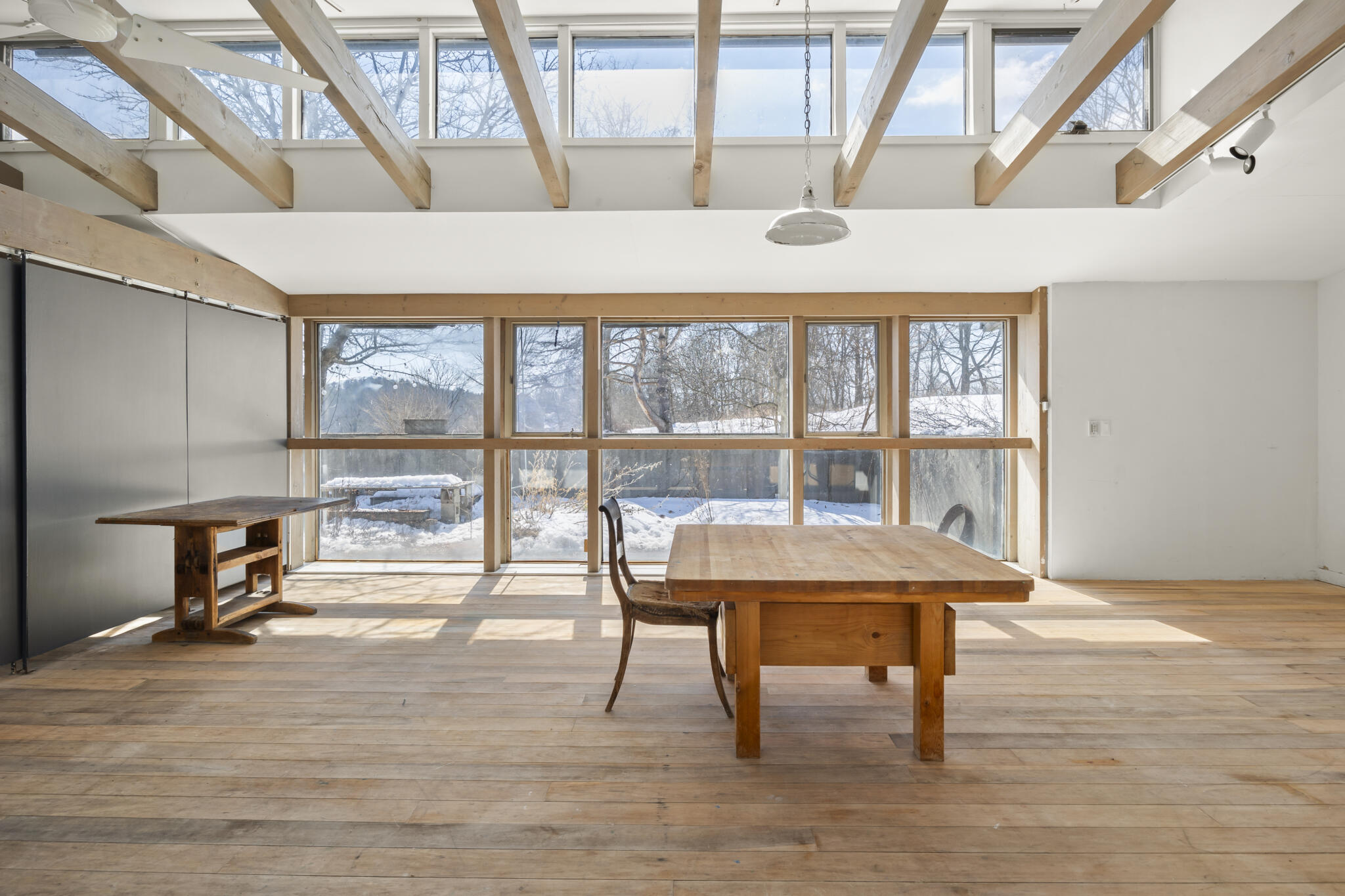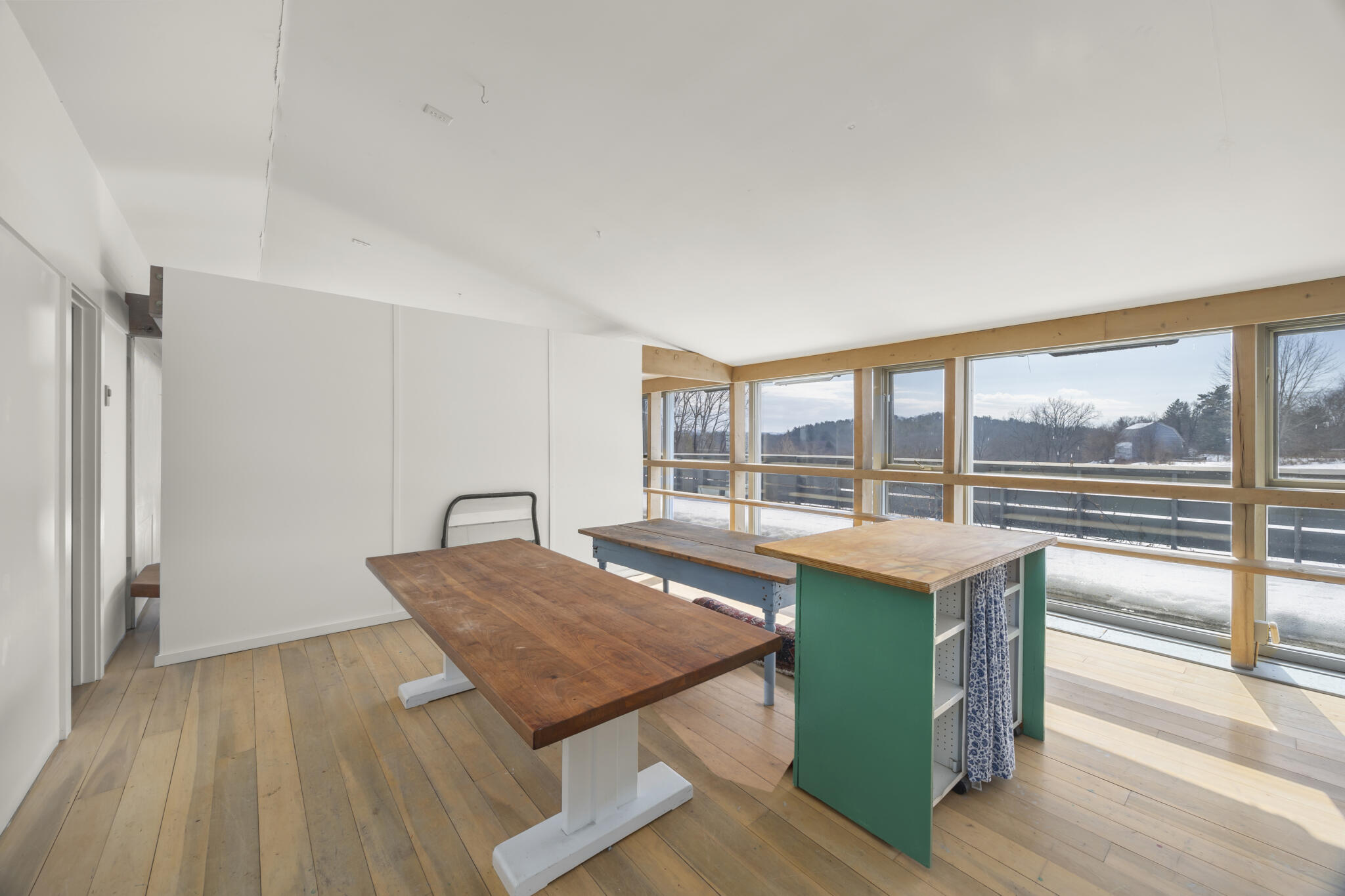 | Tucked away at the end of a quiet dead-end road in the glorious countryside of Chatham, this exceptional property offers privacy, history, and sweeping natural beauty. The circa 1840’s five-bedroom farmhouse combines timeless character with comfortable living, featuring a first floor primary en suite, an inviting library, and a warm living room with a fireplace. The charming hobby room and windows throughout the home frame picturesque views in every direction. A beautifully retored 51 x 28 period barn has been compltely rebuilt and offers remarkable versatility, with additional storage or parking below- perfect for studio space, classic cars, equipment or creative pursuits. An architecturally designed 3000 square foot studio and guest house has two passive solar art studios and provides an inspiring retreat of its own, complete with a primary bedroom en suite, adaptable work areas, a full kitchen with fireplace, plus kitchenette and utility rooms. The expansive picture windows and private patio overlooks the pond and captures dramatic long-range views of the surrounding landscape. A 4 bay carport offers ample under cover parking. Set on more than 65 acres of open fields and woodland, the property includes additional building sites and frontage along the beautiful Kinderhook Creek.This remarkable setting offers endless possibilities, whether envisioned as an artist’s retreat, family compound, or peaceful country haven. |
