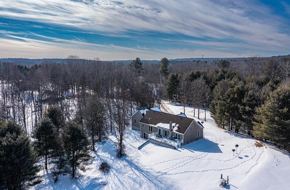 A long gentle driveway leads to a charming cape nestled on a sun kissed knoll on 12 private acres surrounded by mature pines. Enjoy relaxing on the rocking chair porch or lounging on the large back deck under the awing in peace & quiet. This tranquil home was created for low maintenance & ease of use- attached 2 car garage , trex railings & decking, radiant heat and full house generator. Wonderful open kitchen- dining room – living room with gas fire place. Master ensuite bedroom & bath , 2 additional bedrooms , full shared bath & laundry room on the first floor. Should you need more room – there is unfinished space on the second floor & above garage and huge dry walkout basement that could be converted . Plenty of room for a pool, tennis court , horse or any toy that your heart desires! 2 hours & 15 minutes to NYC, 25 minutes to Hudson, 5 minutes to Chatham & Kinderhook & TSP, & a mile from golfing.at Windingbrook Country Club.