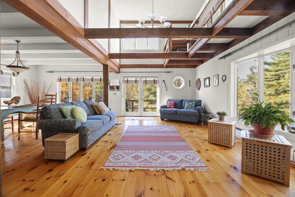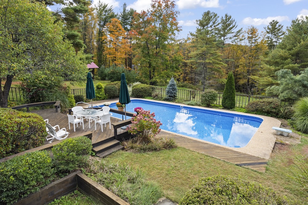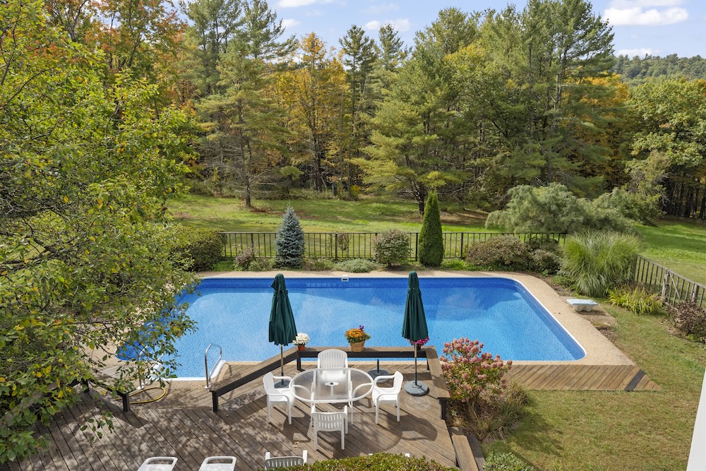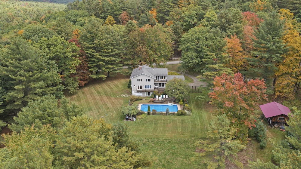 You can hear the QUIET! This spacious light filled contemporary offers an open floor plan, exposed beams and an impressive stone fireplace. There’s a large country kitchen with an antique wood burning cook stove, center island and breakfast room. The great room features the fp and leads to a more formal dining space with built-ins. The second floor has an ensuite primary, plus 3 additional bedrooms and bath. The balcony and multi-level deck overlook the heated inground pool surrounded by gorgeous landscaping. A whole house generator provides peace of mind with no interruptions in comfort. Located off a very quiet country road and a short drive to Chatham village, Tanglewood, Hudson and the Hawthorne Valley School. It truly is a home for all seasons!!