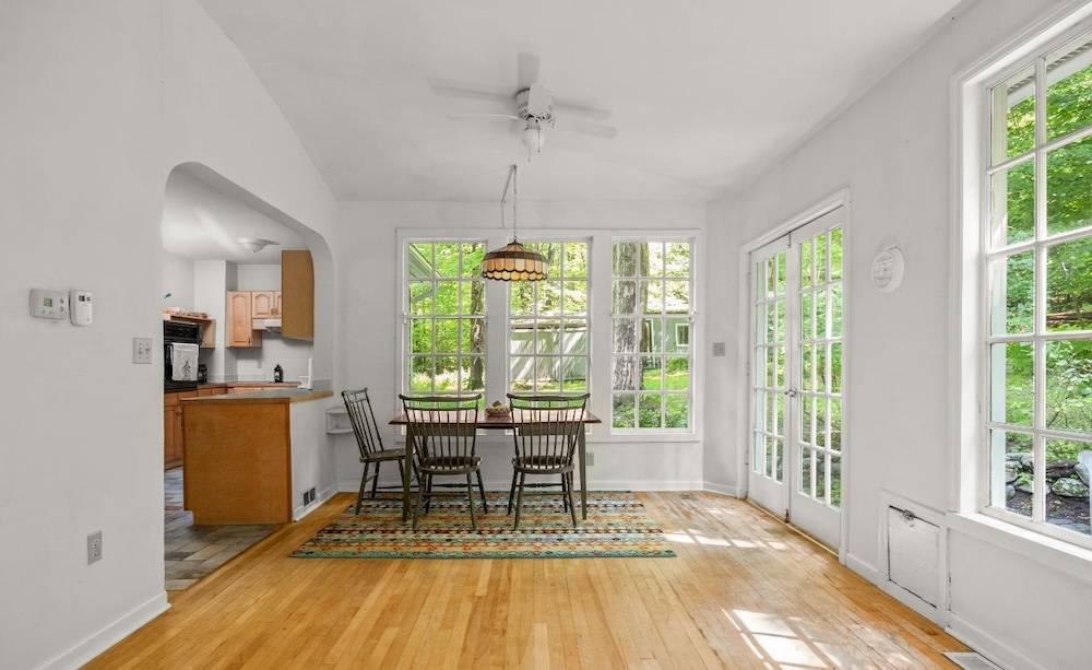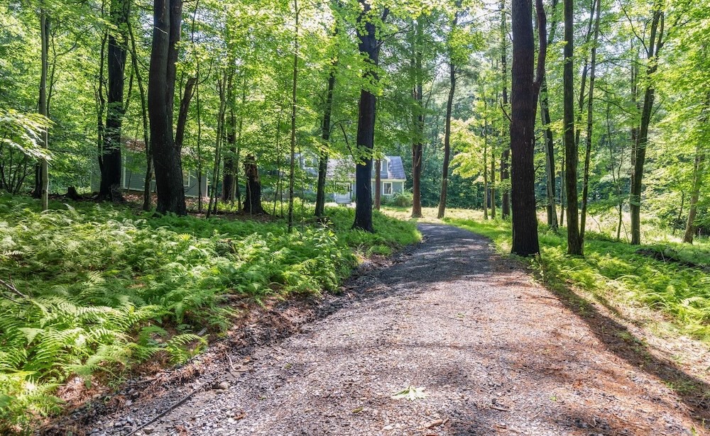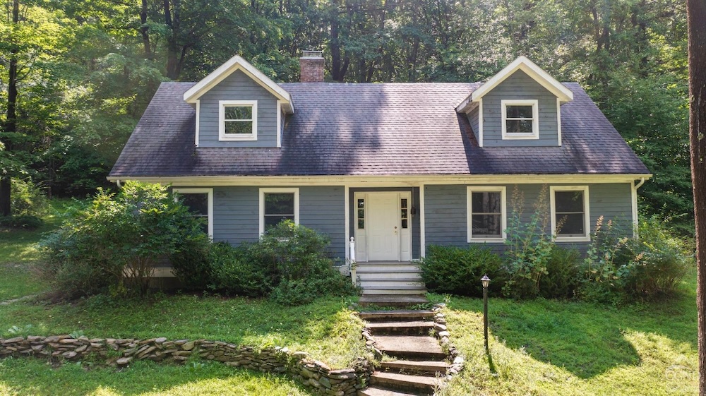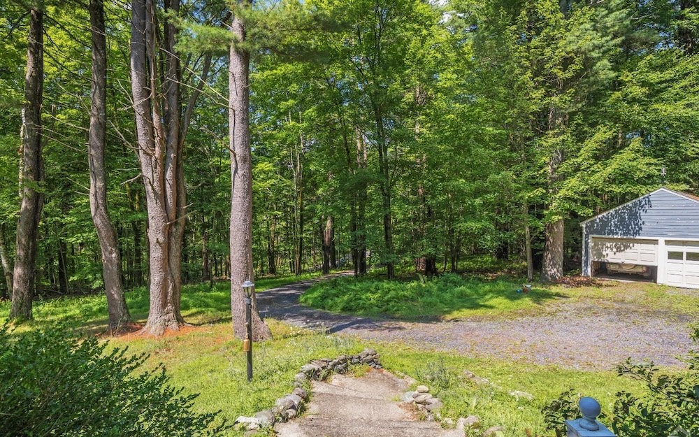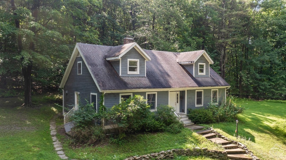 Charming 3 bedroom country cape nestled on 4 private acres. Fantastic location -off a quiet town maintained dead end dirt road just a few miles from the quaint hamlet of Spencertown and in the Chatham School District. Spacious rooms with lots of natural light. Hardwood floors through out. Primary bedroom with ensuite bath on the first floor. Kitchen overlooks a beautiful sunroom with a wood burning fireplace & large windows that view over the stone patio- bringing the outside feeling in. A spacious dry basement with a workshop area, office and den. New mechanicals. 2 car garage, woodshed and gazebo. Absolutely beautiful land lined with stonewalls, hardwoods and ferns. A magical setting to get away from it all with an easy 2.5 hour drive from NYC, 20 minutes to Hudson and 15 minutes to Gt. Barrington.