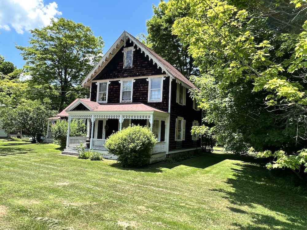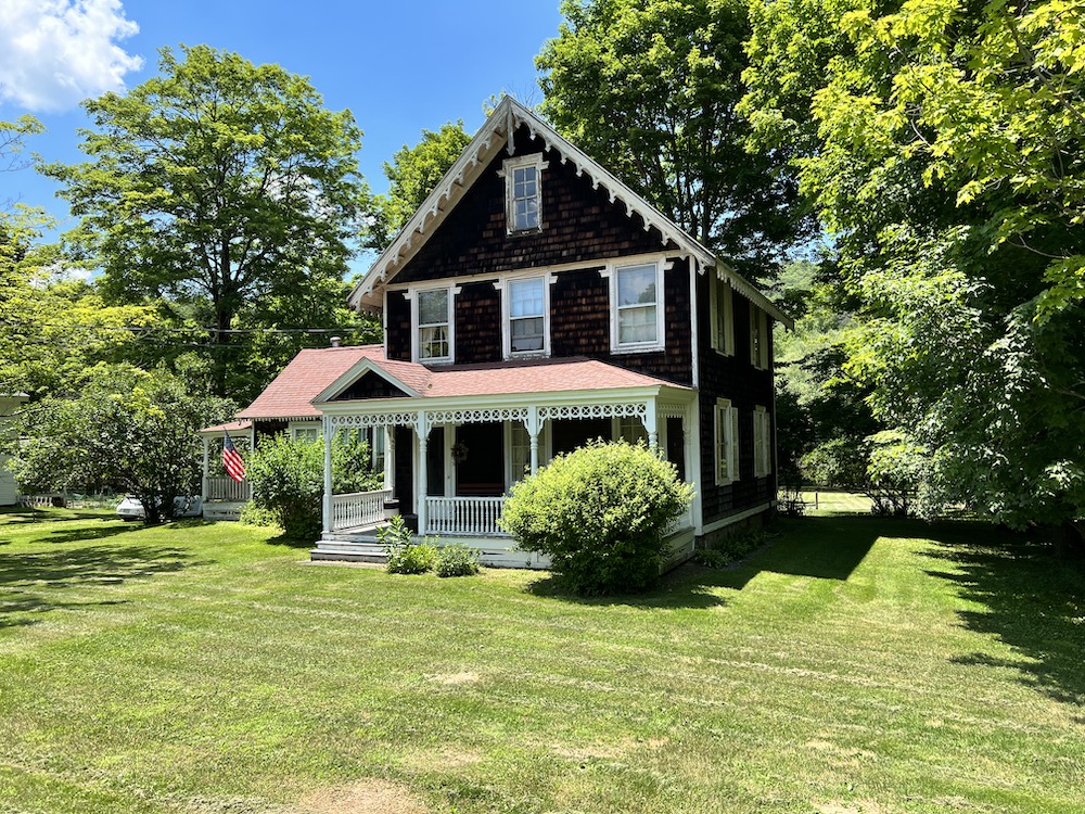 Early home in the hamlet of Spencertown.  1850’s Victorian Farmhouse with beautiful exterior detail, including both a front and side porch for relaxing.  Inside there are many original details, including a full wall of  built- ins, and four bedrooms that are surprisingly sized for the era of the house and with closets!   Big backyard for entertaining, playing, gardening, whatever you need. There is a barn with loft and electricity that could be used for entertaining or turned into guest space with a patio overlooking the pond.  Enjoy the summer evenings by the pond or take a swim on a hot summer day.  Walk to the Spencertown Academy and the park and just a quick drive to the New York State Land for hiking.  Just minutes to Chatham, Hawthorne Valley and the TSP, 20mins to Great Barrington and 30mins to Hudson