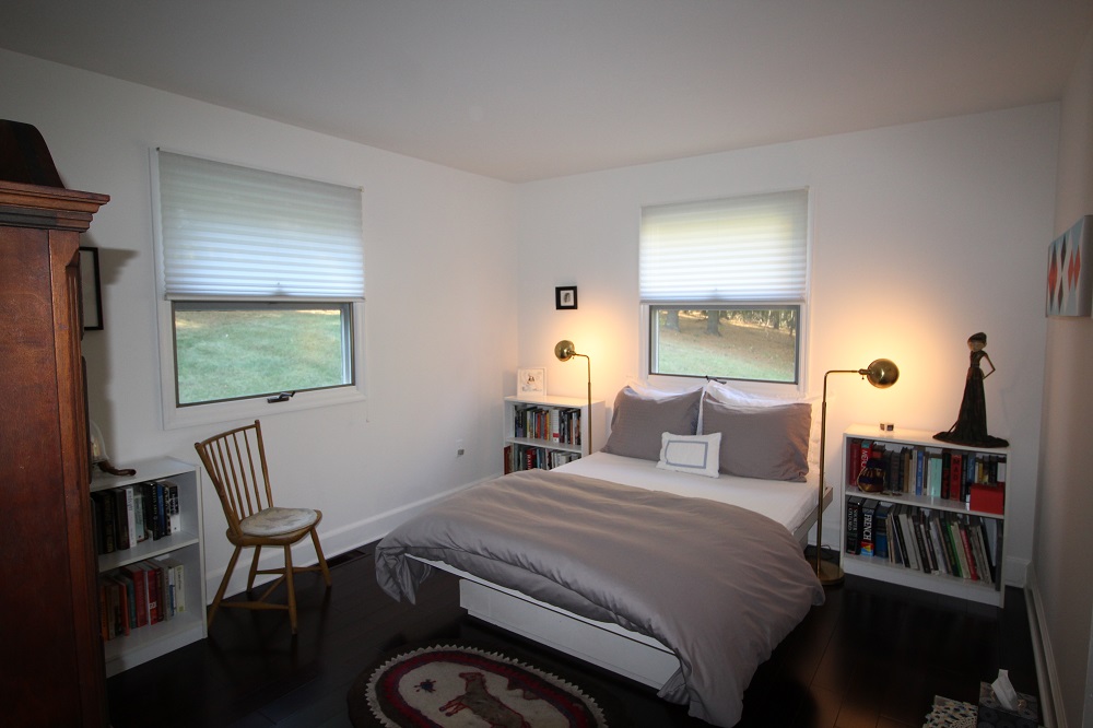 Crisp and stylish contemporary with vaulted ceiling and lots of light.2 fireplaces,first floor en suite master, tranquil screened porch and huge entertainment deck overlooking the gardens and rolling hills. Central air ,beautiful wood floors and fabulous heated studio for the artist or hobbyist. 3 min to Kinderhook village, less than 10 min to Chatham Village.