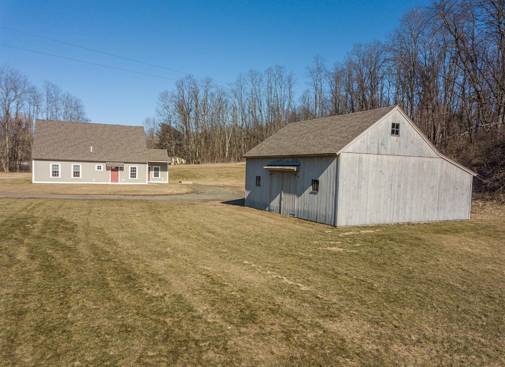 Beautiful stylish cape nestled on 1.5 acres between the hamlets of Old Chatham & Malden Bridge. This immaculate sun-filled home offers a wonderful open floor plan, polished concrete radiant heat floors, granite counter tops, gleaming stainless appliances, 2 spacious bedrooms, full bath & laundry on the first floor and a large 3rd bedroom with wide board floors and full bath upstairs. Superior quality & workmanship through out. Thoughtfully designed for efficiency and very low maintenance.  Added bonus – over sized detached barn/garage with concrete floors & electric -perfect for a workshop or studio.