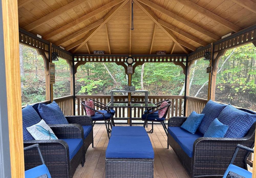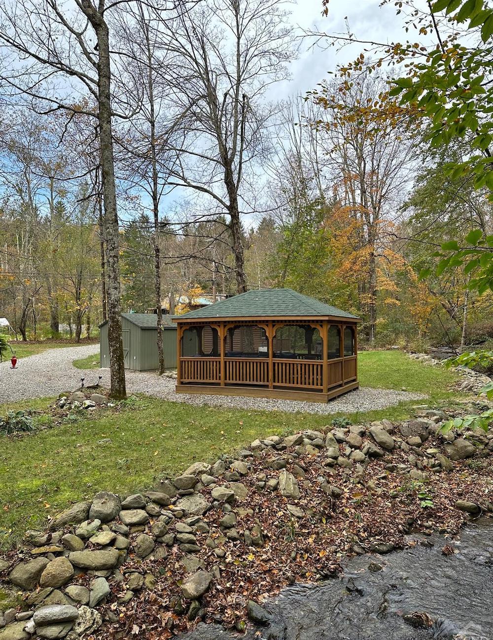 This 7 acre campsite sells complete with all the amenities you can imagine. A fully furnished tiny house, a shed with an incinerator toilet, and a large screened 12 x 16 gazebo are just a few of the features. Hook your camper up the one of the three 50 amp RV receptacles or relax in the tiny house. Meander across the wooden foot bridge and hike to the ridge line for great views and excellent hunting. Located minutes from Jiminy Peak and Cherry Plain State Park, and a short drive to the Berkshires,Tanglewood and Albany the location can’t be beat.